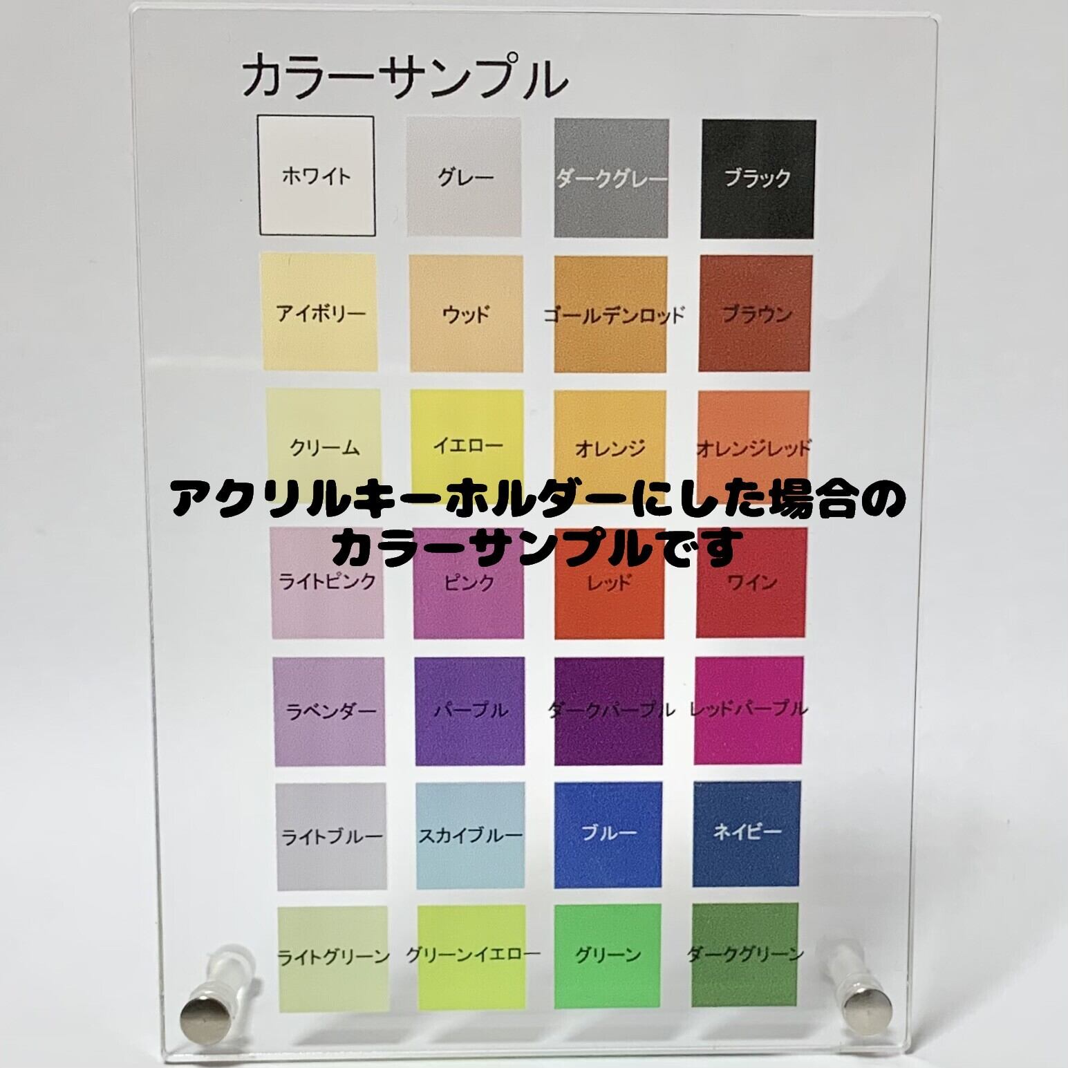 ※アクリル製品は画面上の見本の色より実際の色が薄くなってしまうため、鮮やかな色が出ない場合があることをご理解くださいませ。(ご購入前のサンプルはお渡ししておりません。)